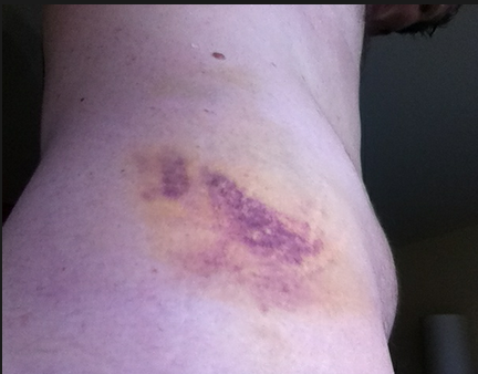 Mahe got knocked off his bike last week The bruising coming out on my hip. Only taken a week.