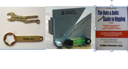 - Stop watch, megaphone, full tool box including pitch gauges and rigging tools